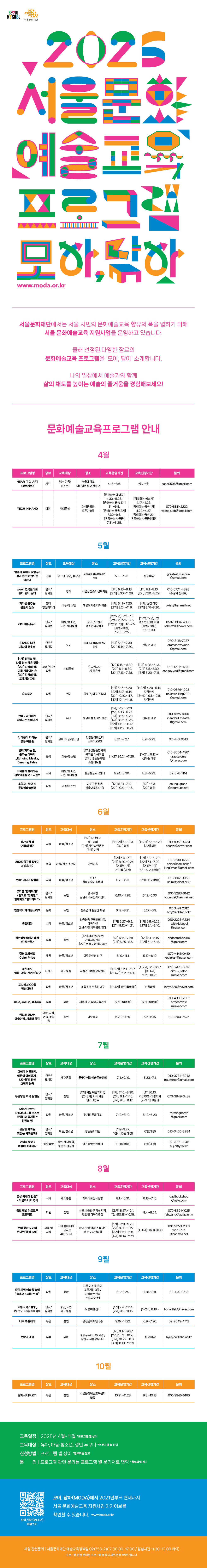 공지 공지 [안내] 2025 서울 문화예술교육 프로그램 모아, 담아 작성자 관리자 작성일 2025-06-10 조회 244 좋아요 0 싫어요 0 인쇄 2025-서울-문화예술교육-프로그램-모아담아_상세내용안내_1차.xlsx « [공모] 2025 서울 문화예술교육 지원사업 1차 통합공모 안내 [안내] 2025 서울 문화예술교육 프로그램 모아, 담아 2차 » 목록보기 Powered by KBoard